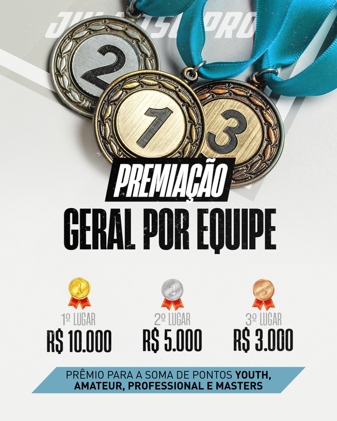Categorias: Medalhas para os 1°, 2° e apenas um 3° colocado.